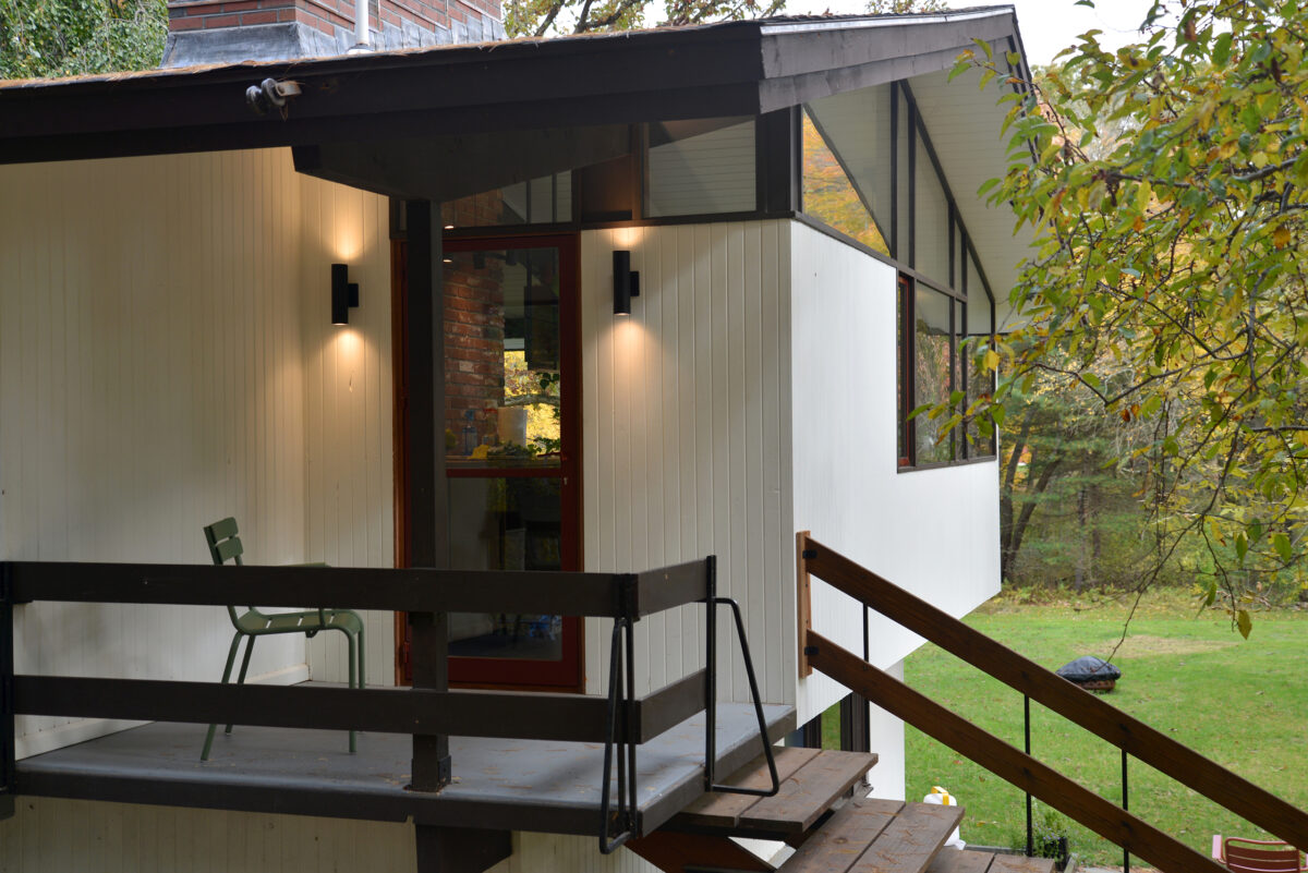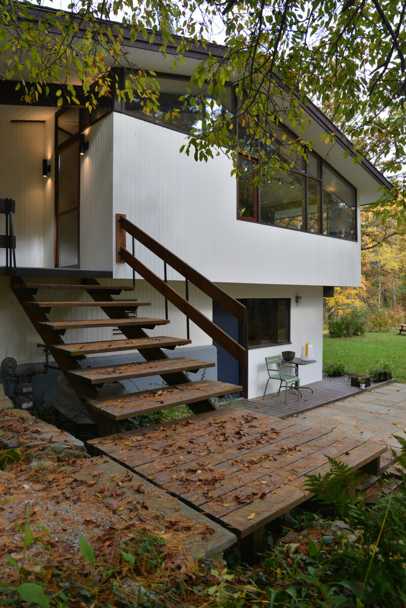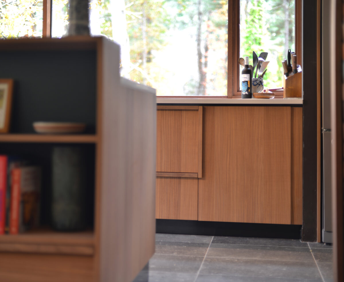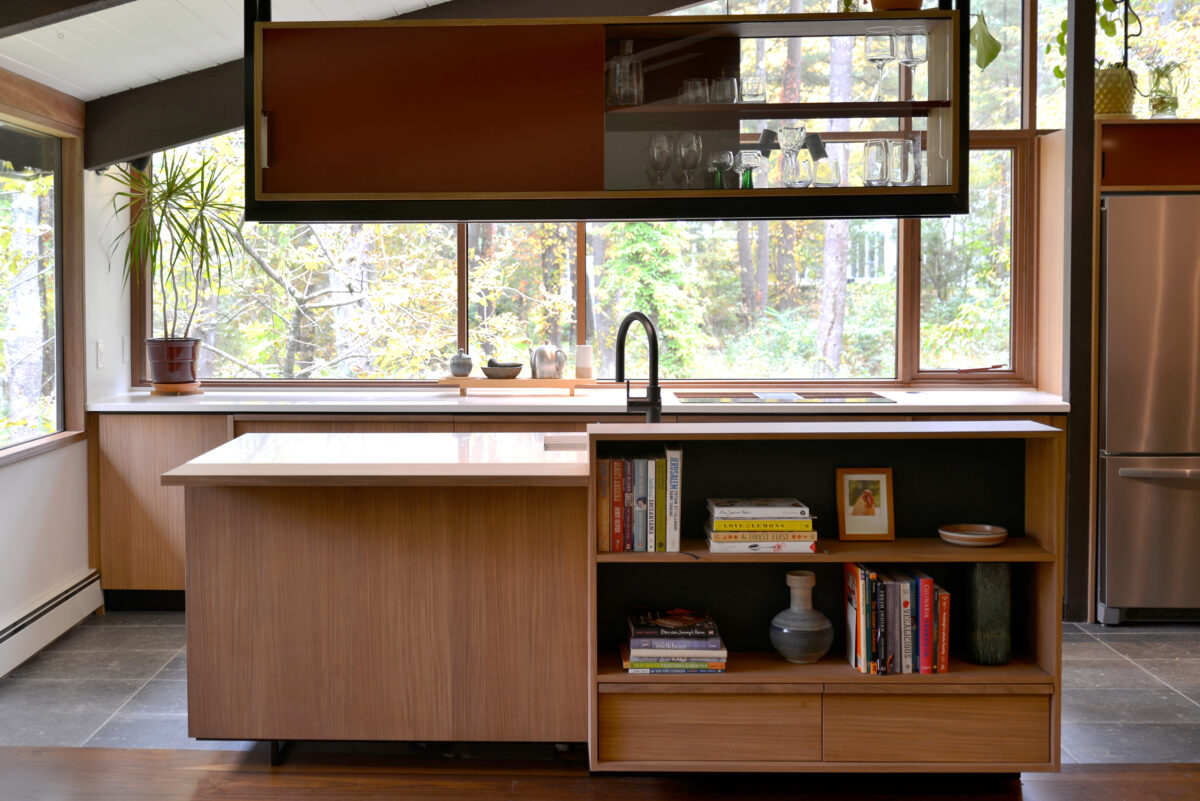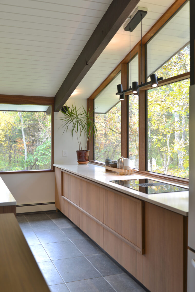 Voor dit project hebben we een nieuwe keuken en uitbouw ontworpen voor een Deckhouse in Noord-Oost Amerika. Deze typologie was ontwikkeld door vroege modernisten in de vorige eeuw als antwoord op de dominante koliniale bouwstijlen die hier nog steeds veel voor komen. Een Deckhouse werd aangeboden als een prefab bouwpakket. Het hoogwaardige materiaal bestond uit de kenmerkende massieve cedar vloer en dakplaaten – “decking” – mahonie kozijnen met draaiende delen van staal en natuurlijk de houten hoofdconstructie. Al deze elementen geven deze deckhouses een tijdloos karakter dat nog steeds sterk aftekend tegen de gangbare bouwstijlen.
